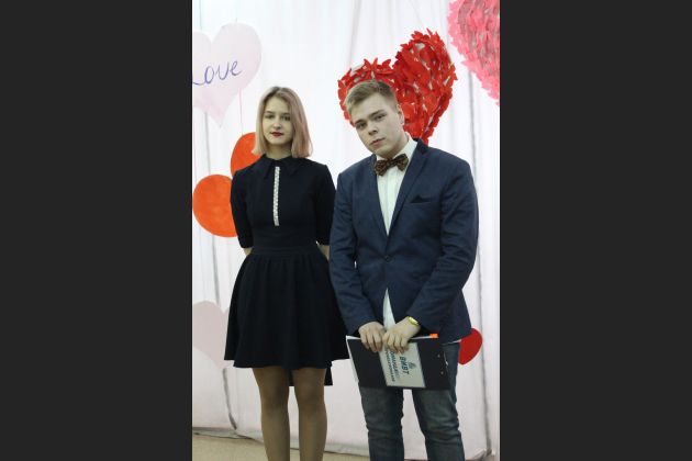В 12.40 в актовом зале состоялось развлекательное шоу. Благодаря мероприятию были созданы пары, которые боролись за звание победителей. Оценивались юмористический подход и находчивость. Победителями стали Виктория Панченко и Александр Фомочкин. Поздравляем!